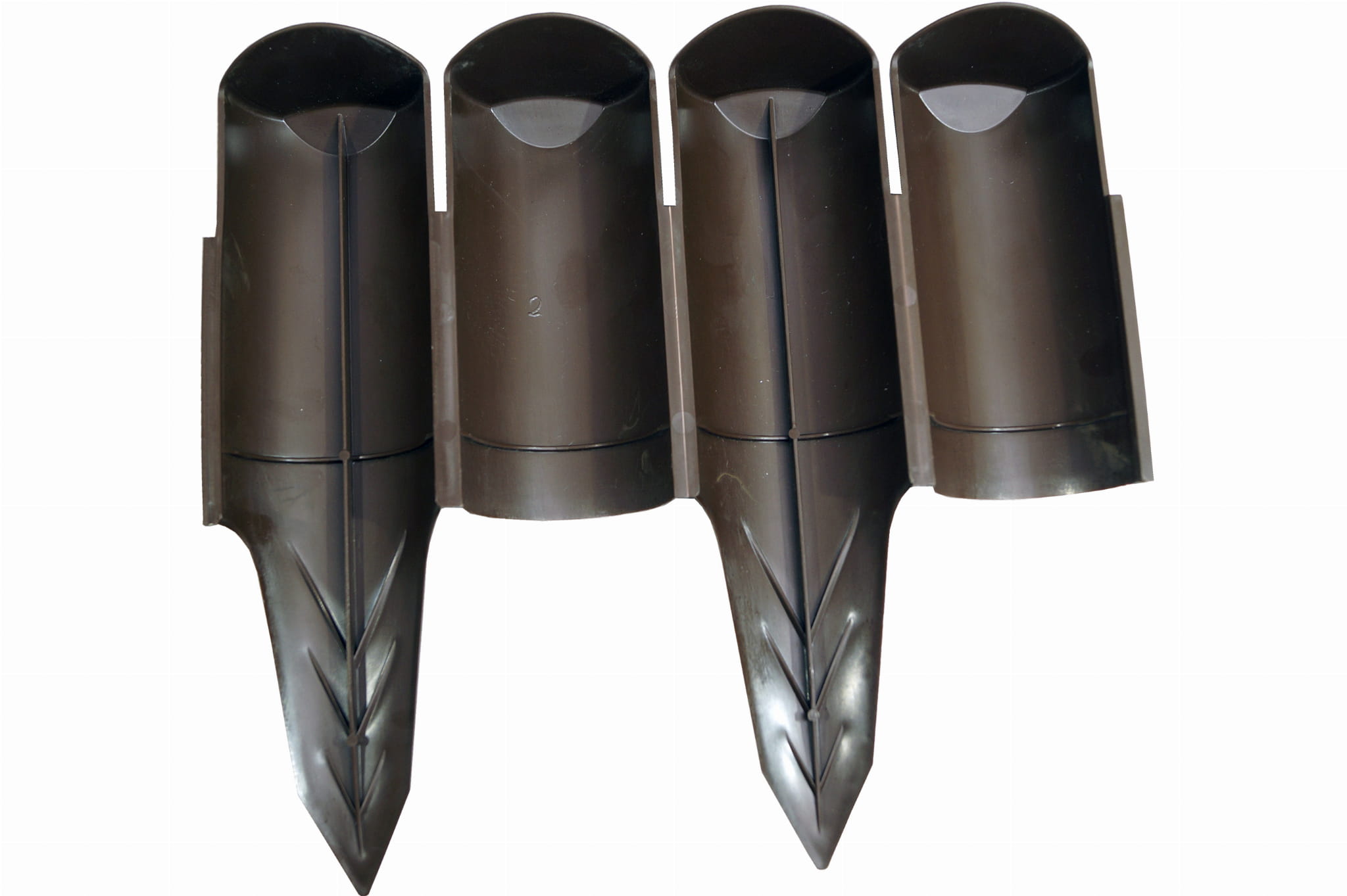 Specjalnie zaprojektowany szpikulec solidnie trzyma palisadę w ziemi, co podkreśla jej trwałość i wytrzymałość.