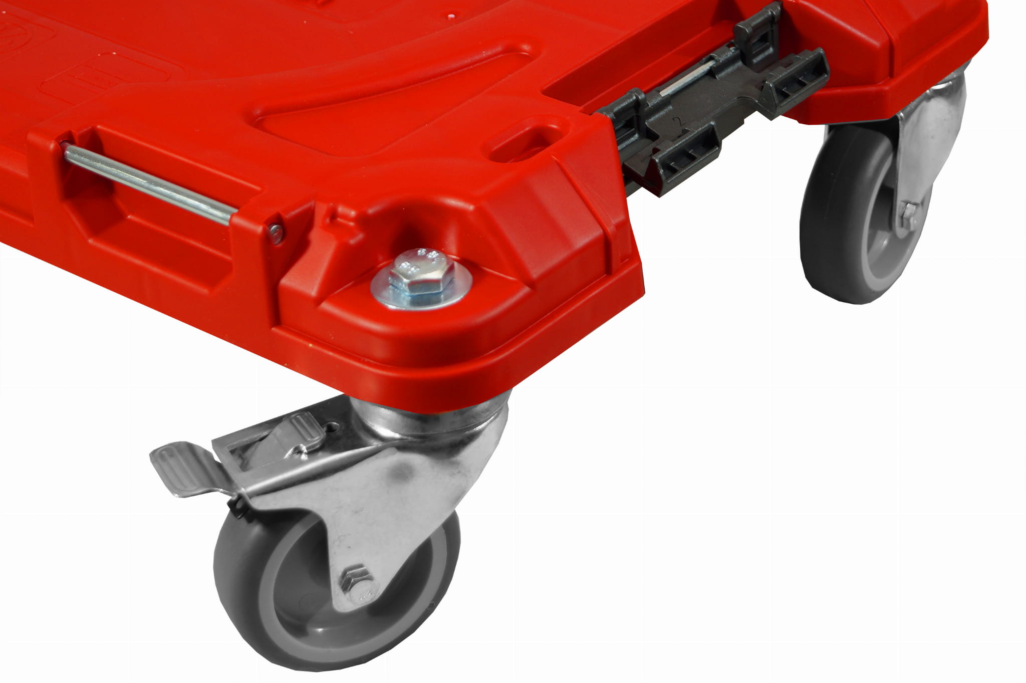 Qbrick System PRO RED ULTRA HD Platforma transportowa została wyposażona w cztery kółka obrotowe, dwa z hamulcem, oraz dwa bez. Łączy się z wszystkimi elementami systemu QBRICK SYSTEM PRO.