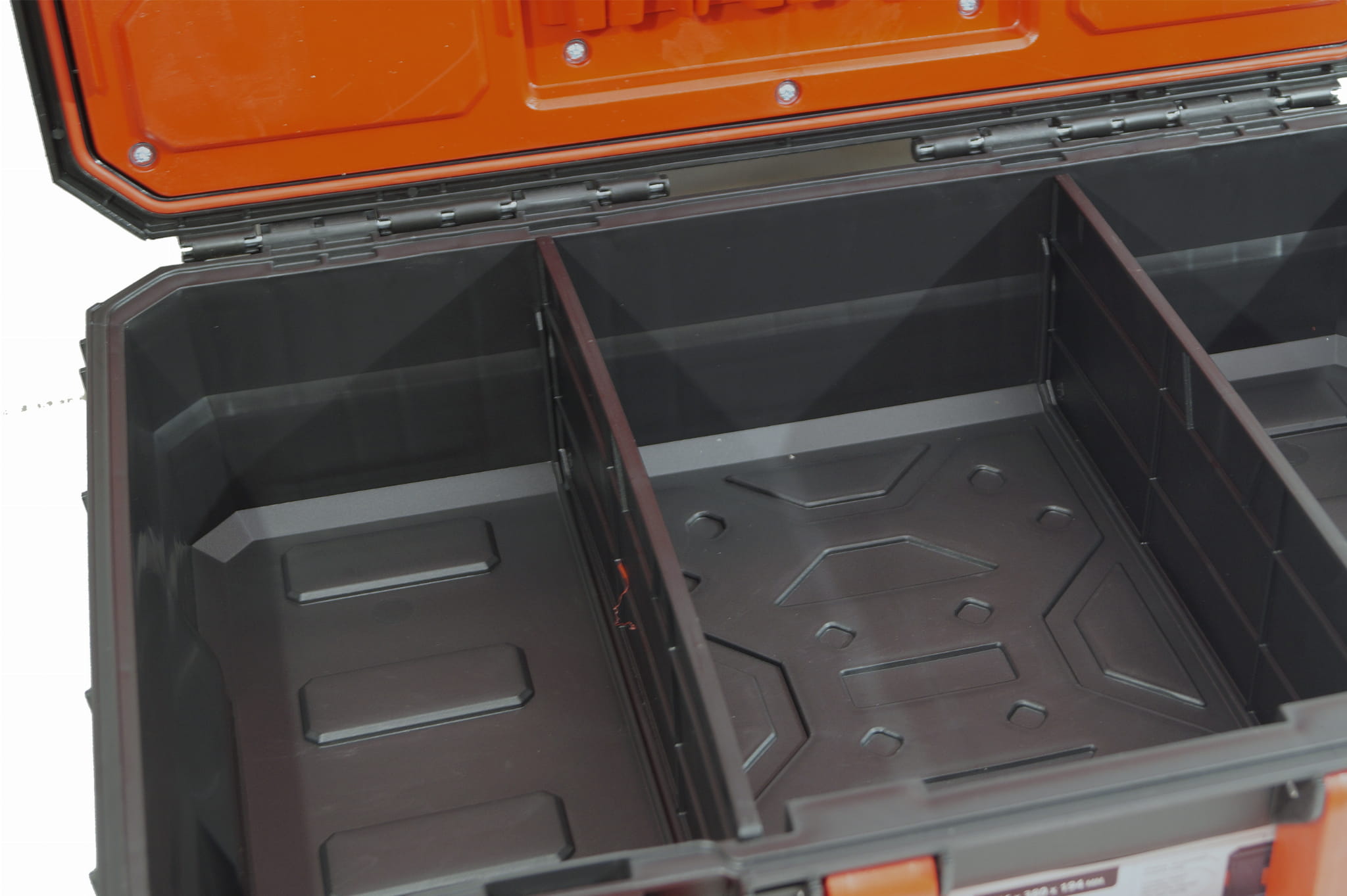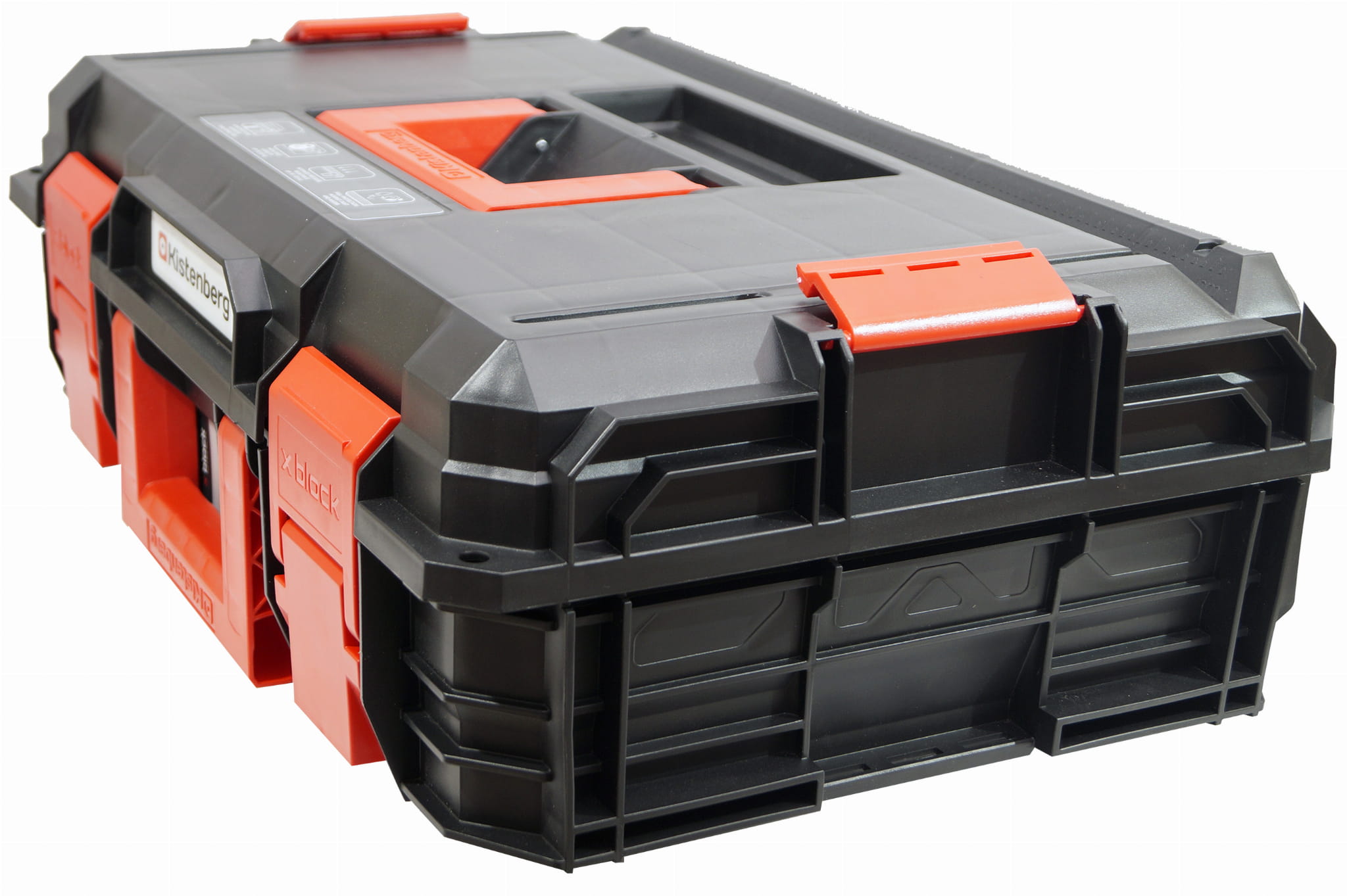 Skrzynka narzędziowa Kistenberg X-Block X PRO KXB604020 wewnątrz posiada 4 małe kuwety oraz 2 duże, jak również 2 przegrody.