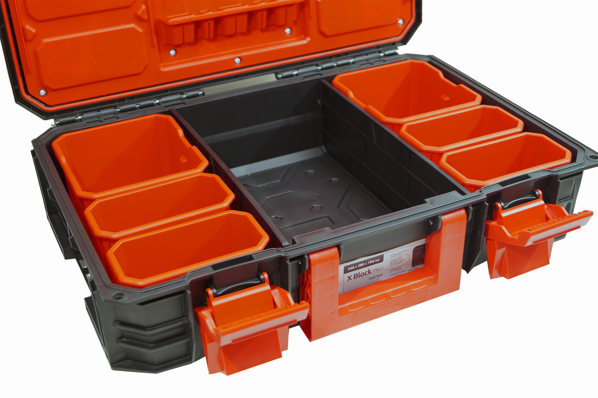 Posiada wymiary 546x380x194mm i jest jednym z modułów serii skrzynek X Block X Pro Series modular system.