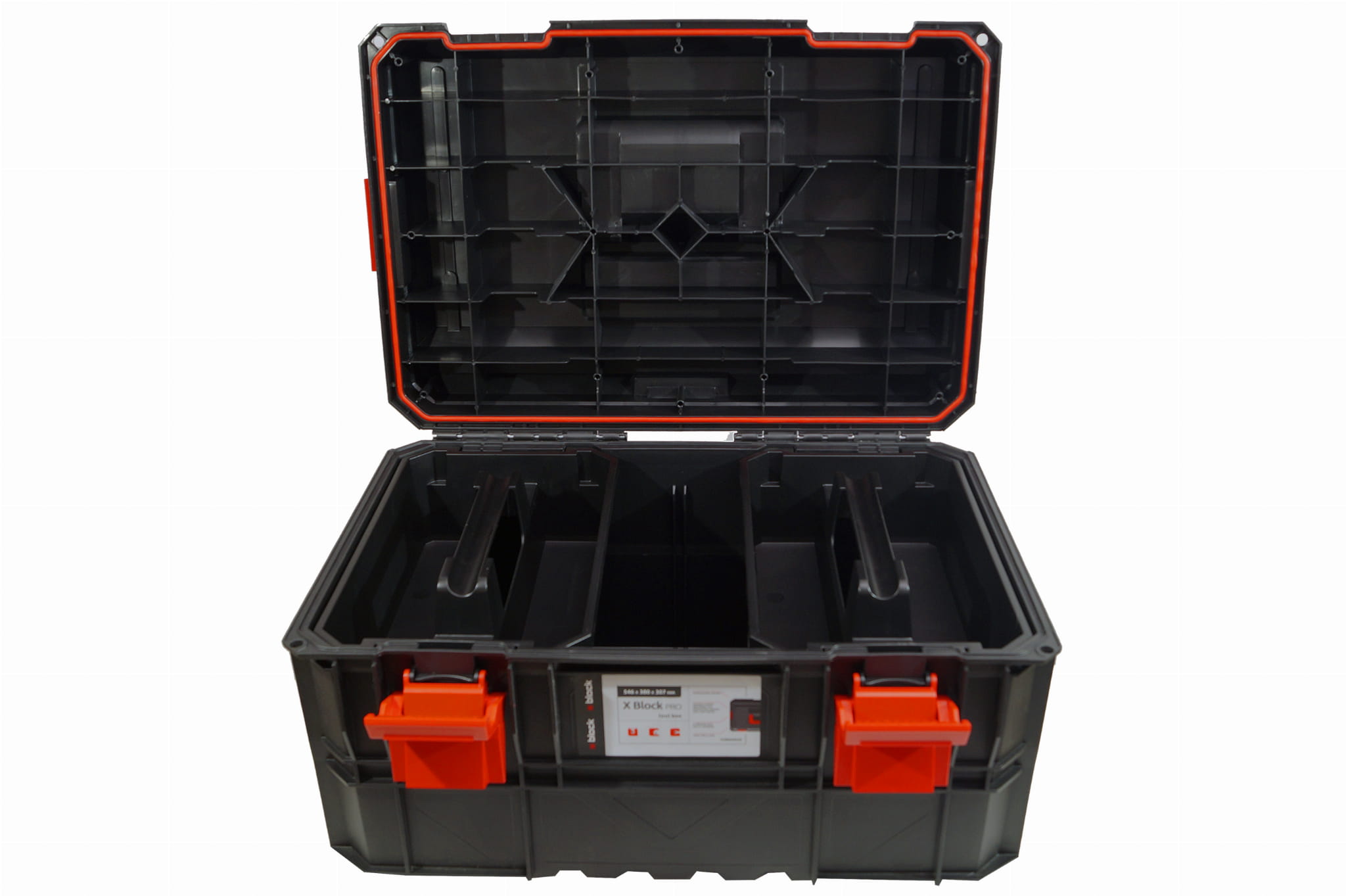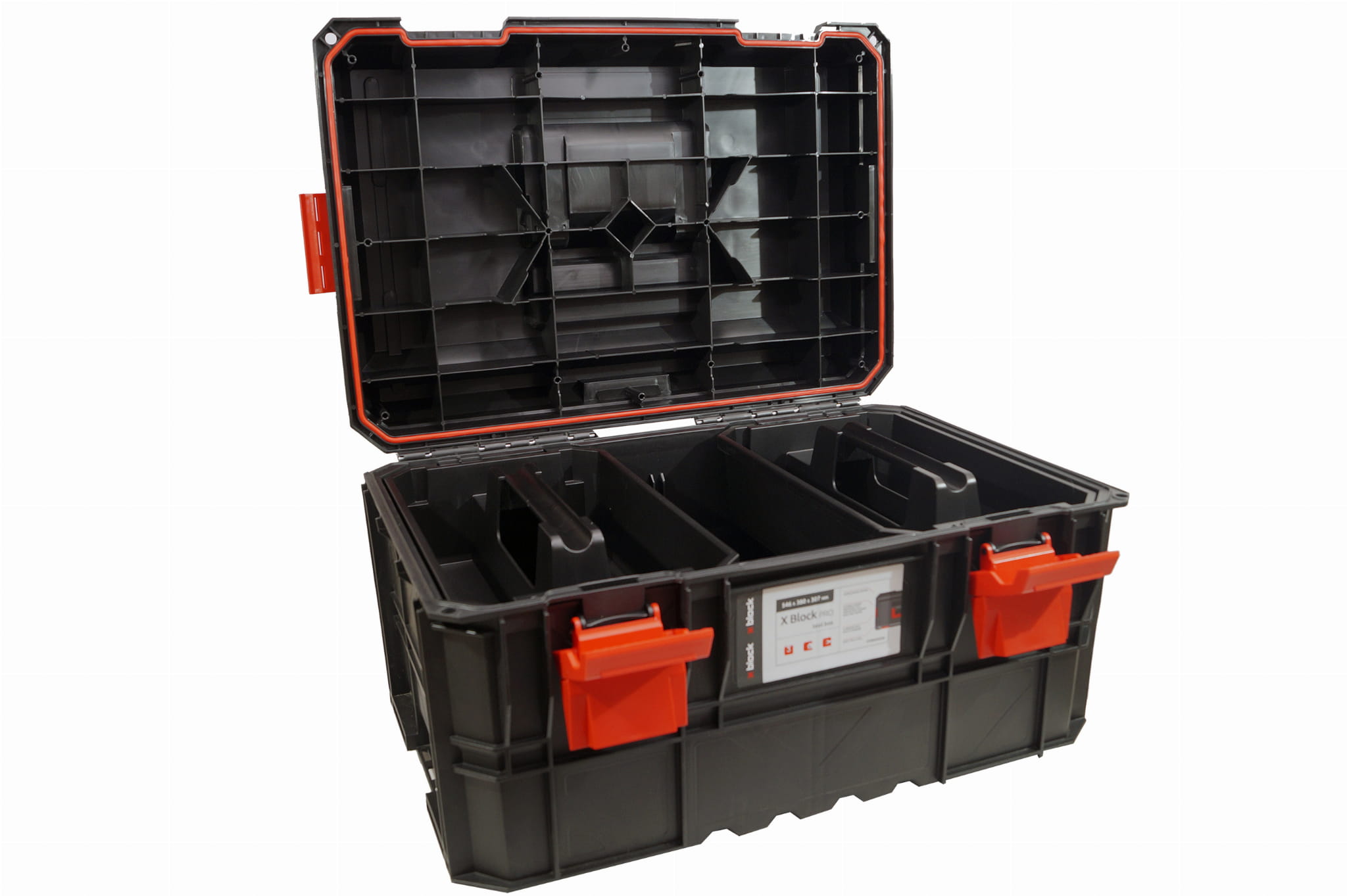 Posiada wymiary 546x380x307mm i jest jednym z modułów serii skrzynek X Block X TECH Series modular system.