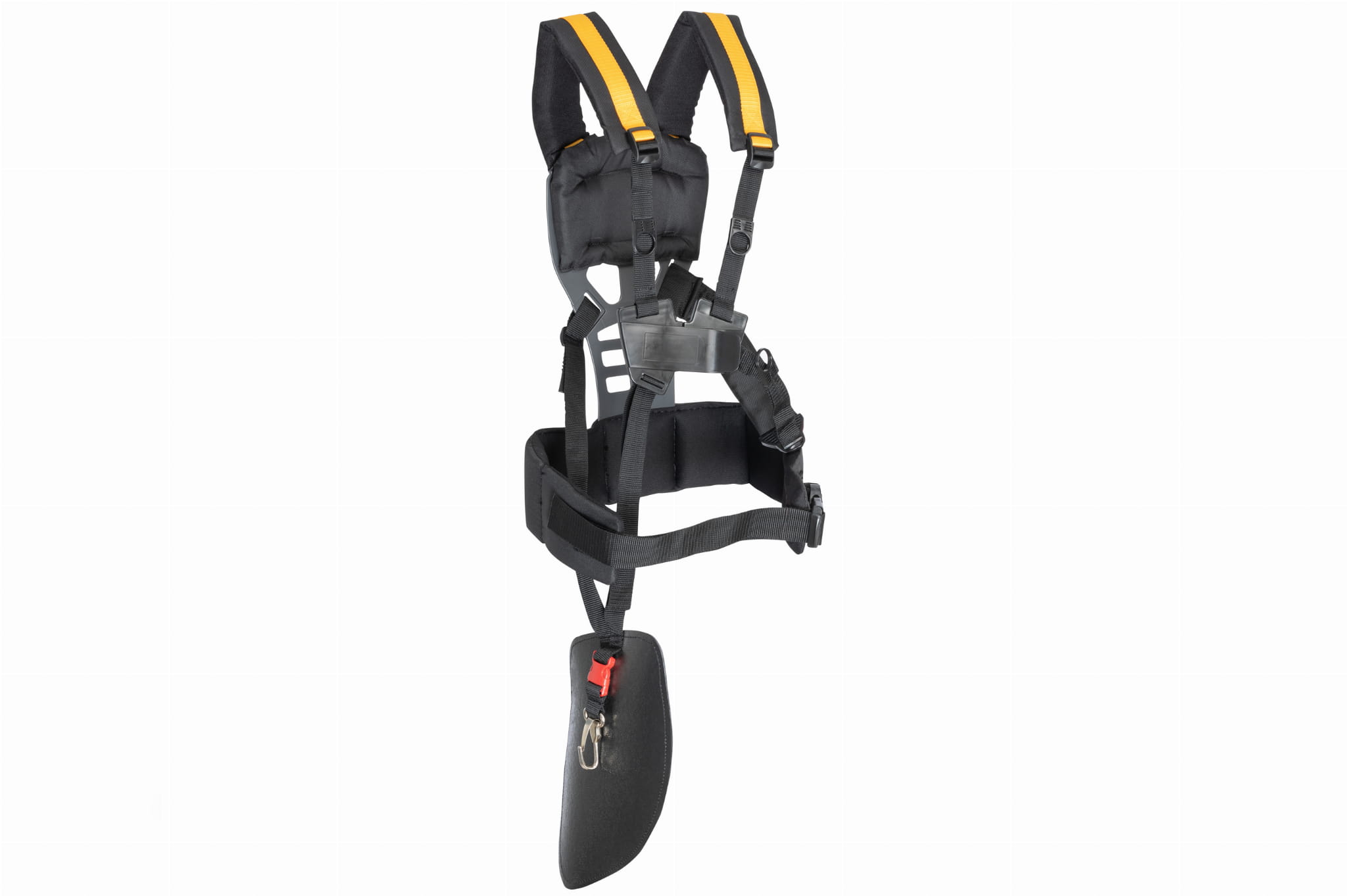 Na piersi STIGA wyposażyła wygodne szelki do kosy w multi-click - opatentowane złącze, które: