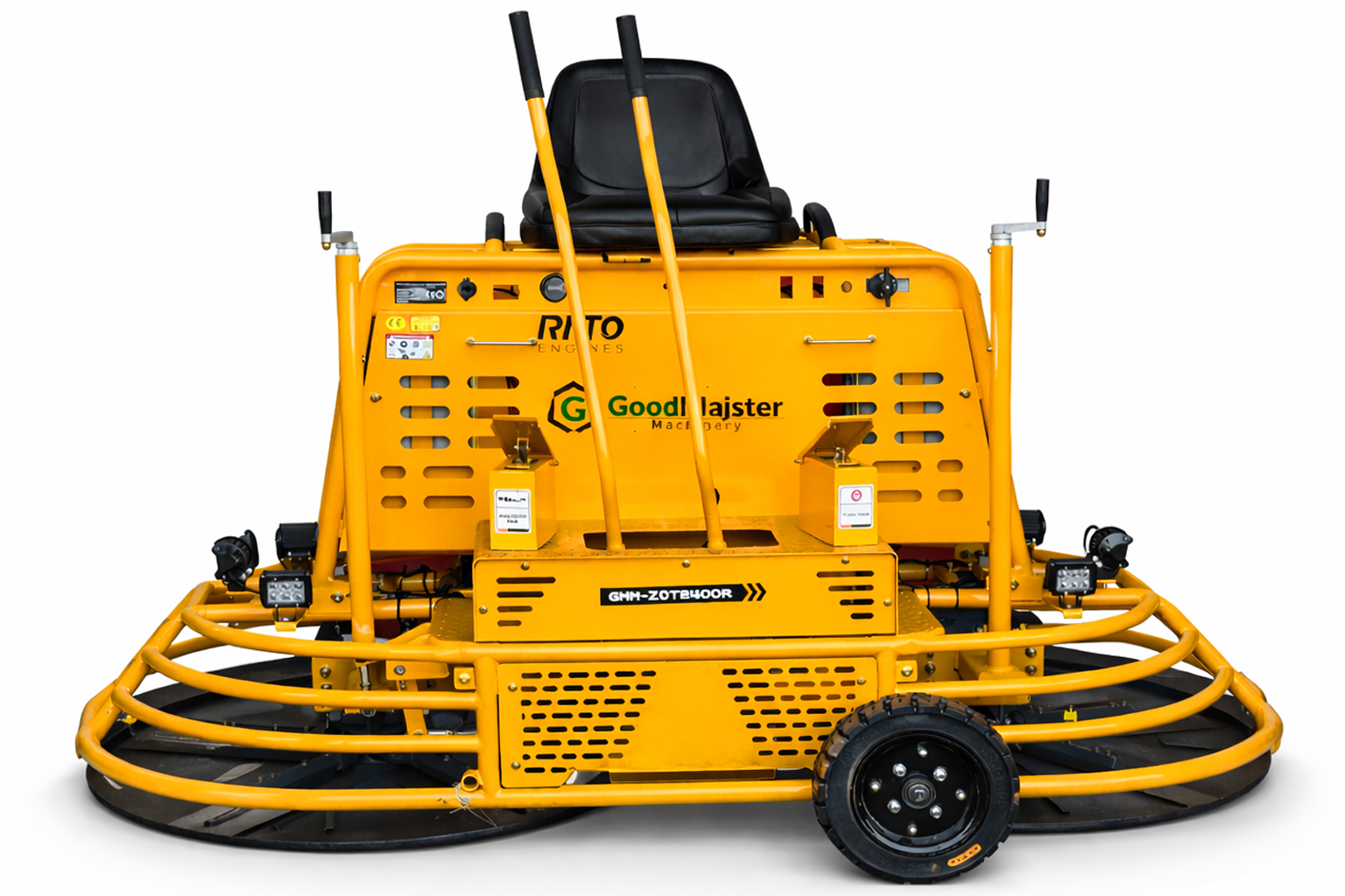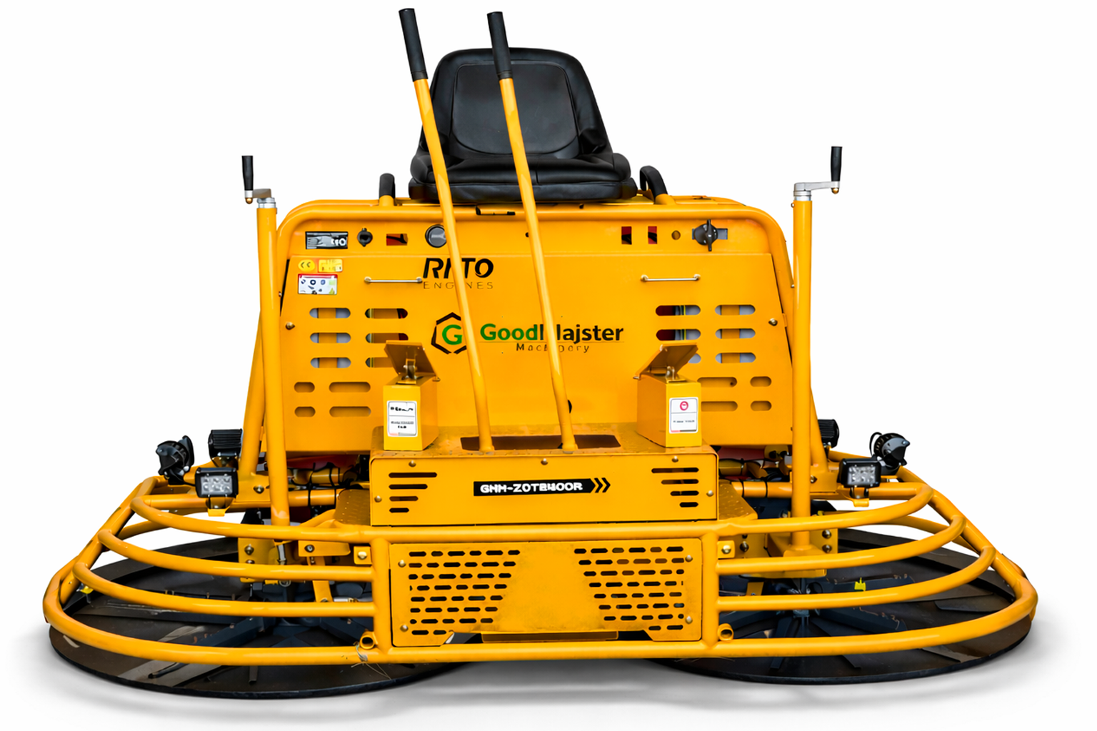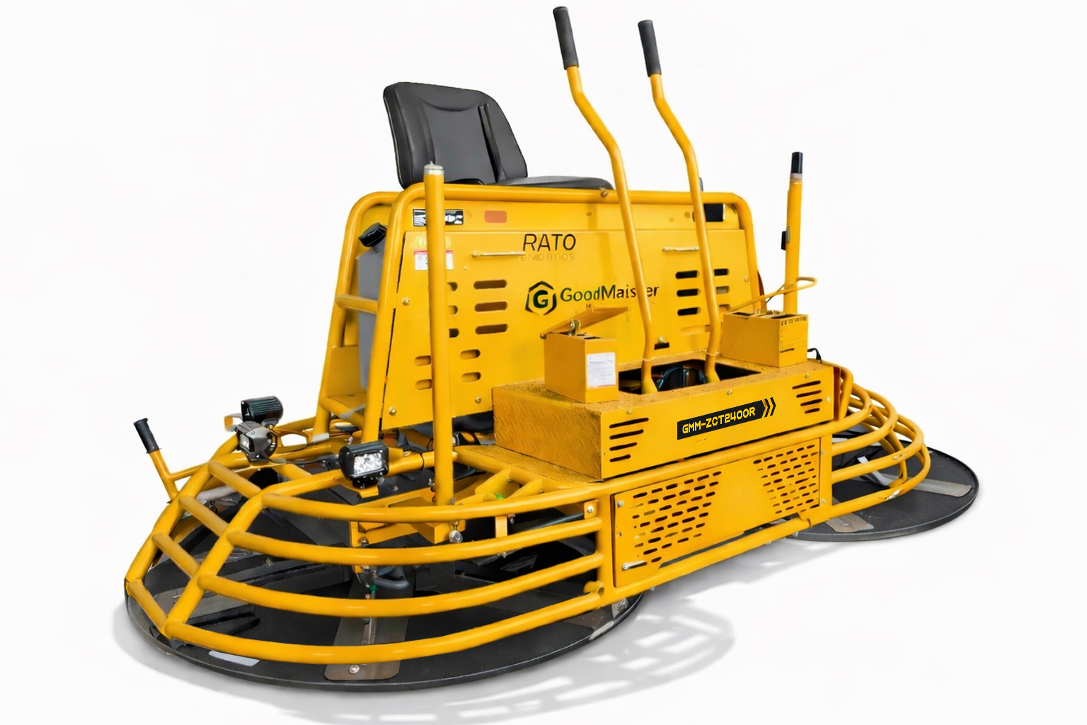 Zacieraczka samojezdna GoodMajster Machinery posiada spalinowy silnik RATO R999D o pojemności aż ✔️999ccm i mocy ✔️24,5kw / 33KM, dzięki czemu sprawdza się jako ✔️zacieraczka dwuwirnikowa, oraz profesjonalna zacieraczka samojezdna z dwoma talerzami o szerokości 120cm każdy.